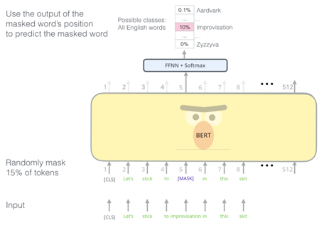 기존의 방법들은 보통 문장을 왼쪽에서 오른쪽으로 학습하여 다음 단어를 예측하는 방식이거나, 예측할 단어의 좌우 문맥을 고려하여 예측하는 방식을 사용한다. 하지만 BERT는 기존 방식과 다르게 아래 방식을 사용한다.