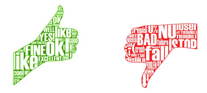 Word Classification을 통한 긍정/부정어 word cloud.