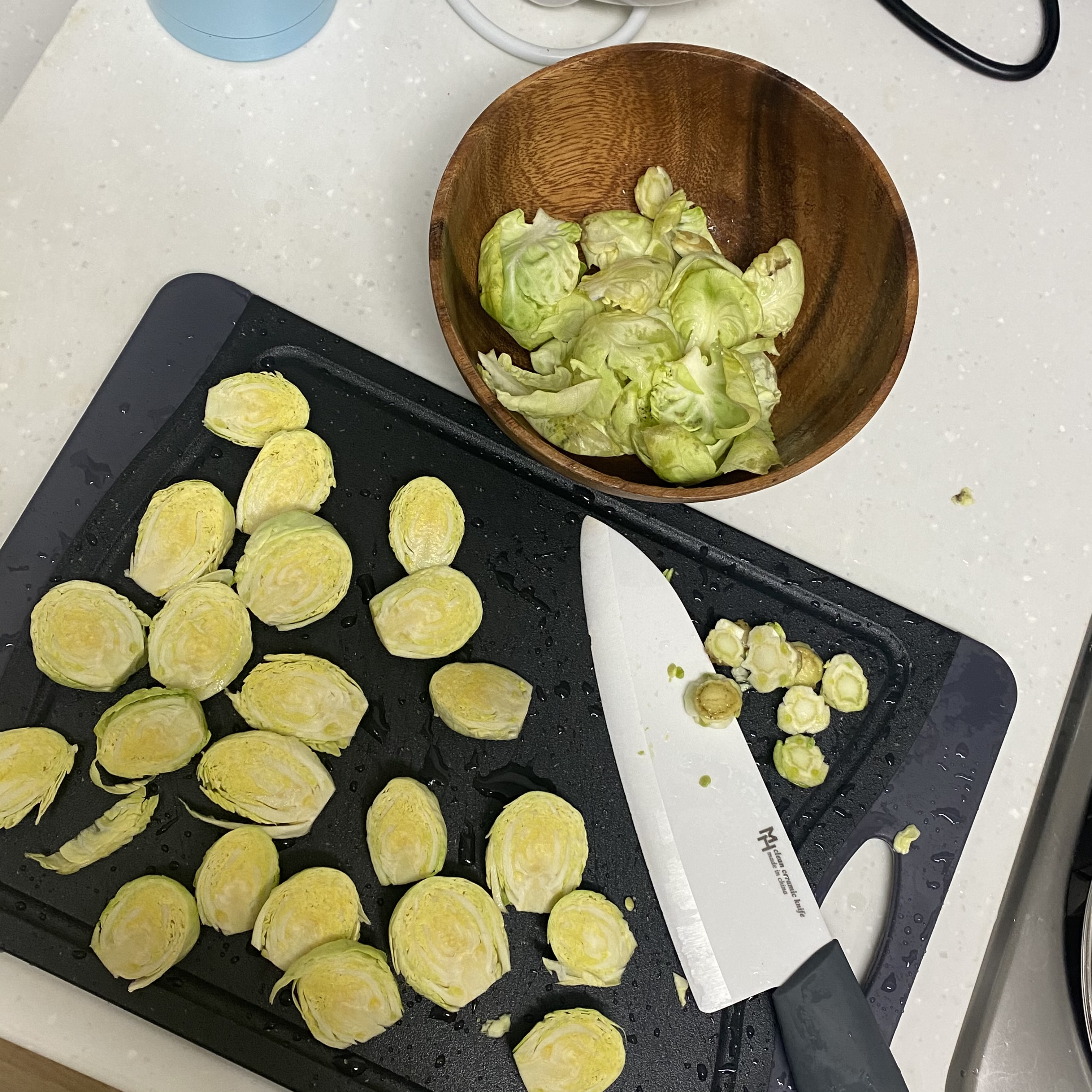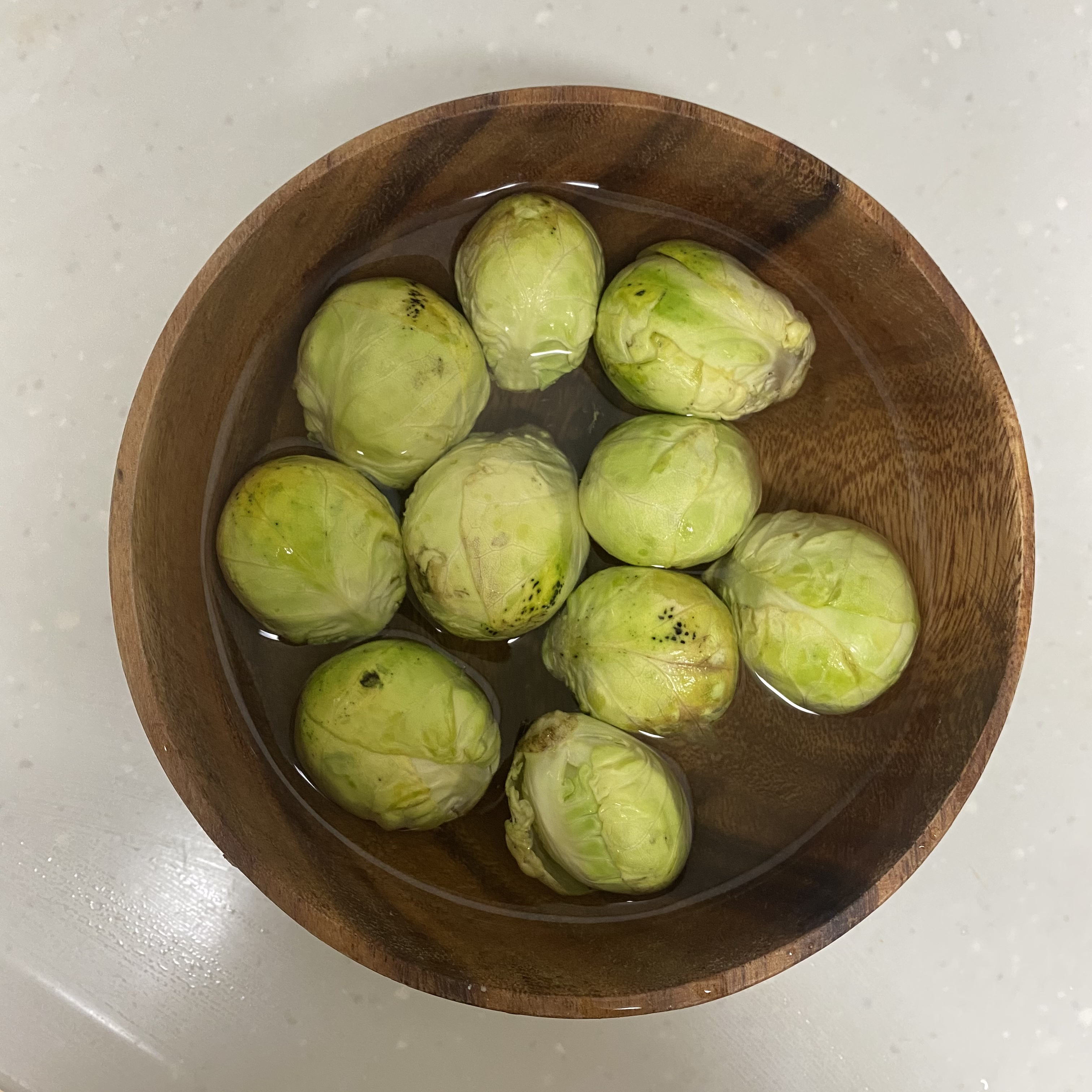 3. 깨끗하게 씻고 나면, 방울 양배추 겉면을 벗기고 먹기 좋은 크기로 썰어준다. 나는 두 동강 내었다.