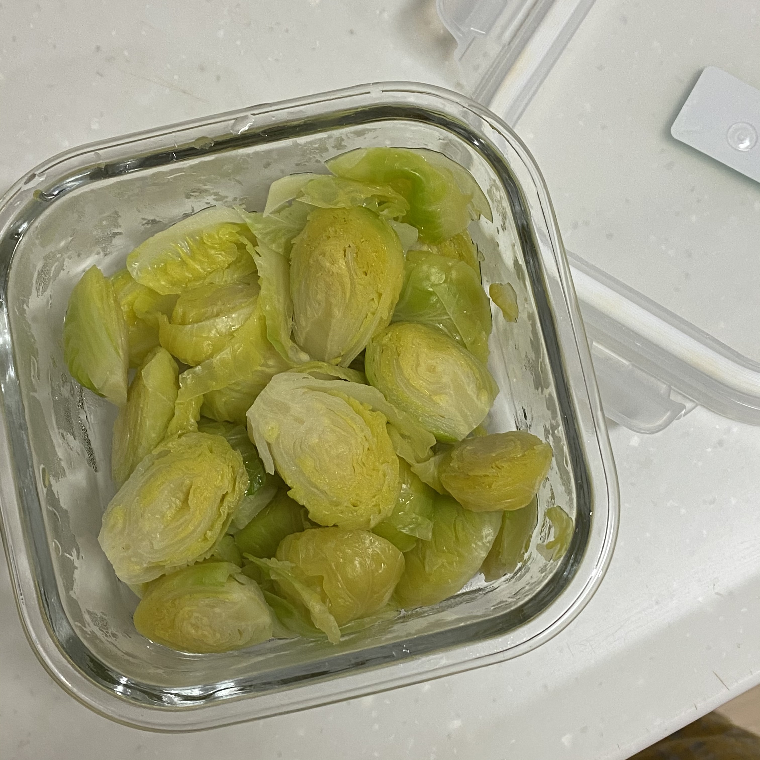 다이어트 식단 조절하면서 '방울 양배추'라는 야채를 알게 되었고, 생긴 것도 귀여운데다 영양분도 풍부한 야채라고 들어서 구입하게 되었다. 주로 그릴드 샐러드를 할 때 같이 구워서 먹었는데, 그 자체로는 맛이 풍부하지 않았으니....결국 냉장고에서 일주일동안 자리를 차지하게 되었다. 남은 방울양배추들은 데쳐 먹기로 했다.