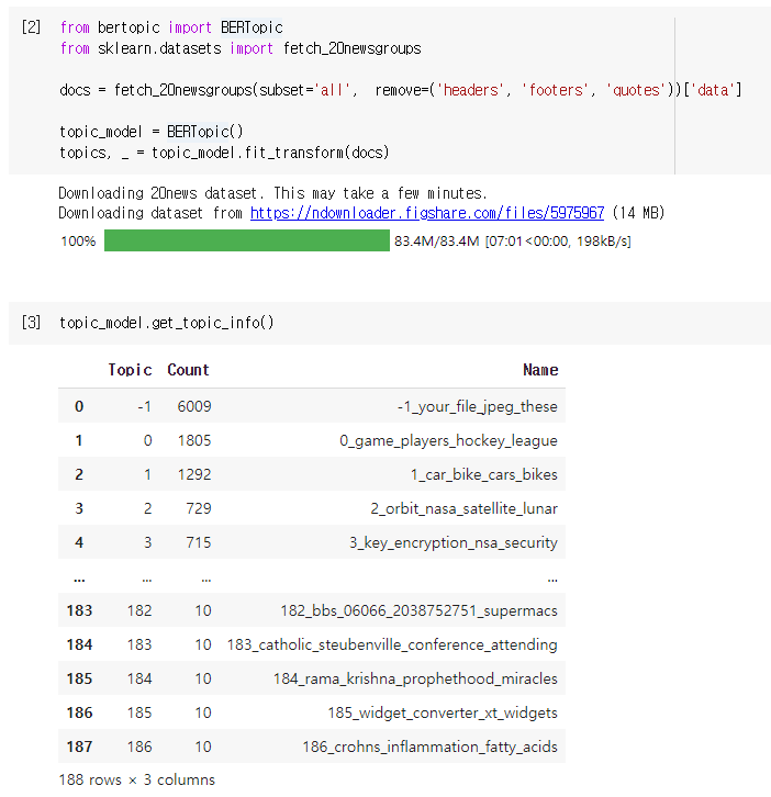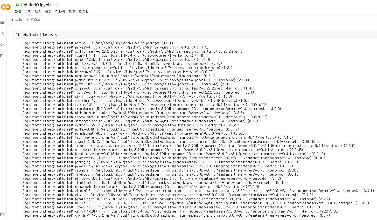 우선 bertopic을 깔았다. (n분)