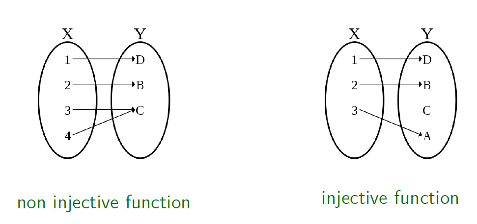 Injectivity를 한글로 번역하게 되면 '단사'라는 뜻인데요. 잠깐 학창시절에 배운 수학을 떠올려 보면 왼쪽 그림처럼 다른 input에 같은 output이 매칭될 수 있는 함수의 경우 non-injective function, 오른쪽 그림처럼 다른 input이면 다른 output을 낼 수 있는 함수를 injective function이라고 칭합니다.